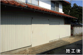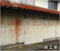 さびの浸食が目立つ波板の外壁を、ガルバリウム鋼板の角波に張り替えました。 ガルバリウム鋼板の外壁は、母屋の外観に合わせ様々な色や形状で施工することができます。