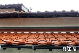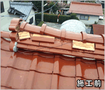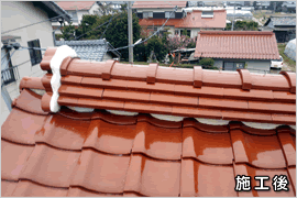 瓦棟が崩れ、瓦がずれて漆喰が落ちてしまっているのを、新しく積みなおしました。 瓦のずれや、漆喰の痛みは雨漏りの原因になりますので、早めの修理をお勧めします。