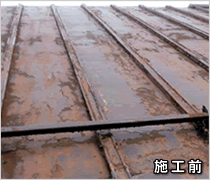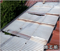 さびの浸食が目立つ鋼板屋根、幸い室内までは浸透していませんが、やはり雨漏りしていました。 ガルバリウム鋼板での屋根の葺き替え施工をしました。 従来の鋼板は年月が経つと腐食していきますが、ガルバリウム鋼板はアルミや亜鉛で鉄をコーティングする事で、高防腐性・高耐久性を実現しています。 優れた耐久性のガルバリウム鋼鈑ですが、定期的な点検/メンテナンスをお勧めします。